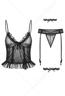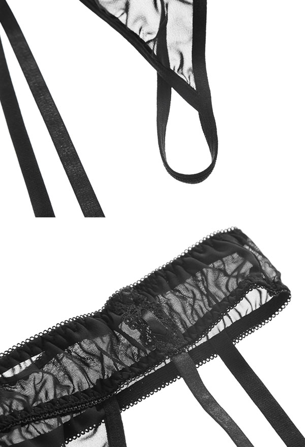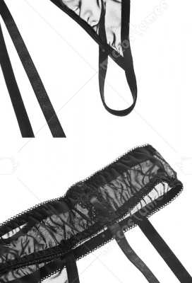 Costume Includes: suspenders, thong, leg loops, choker. Material: nylon.