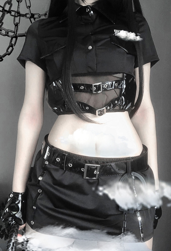 Women Sexy Net Yarn Spliced Black Cool Cosplay Lingerie Set Costume