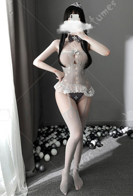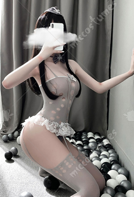 Costume Includes: hat, choker, body stockings, thong. Material:nylon.