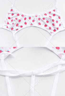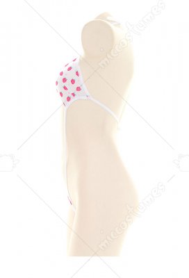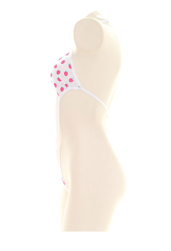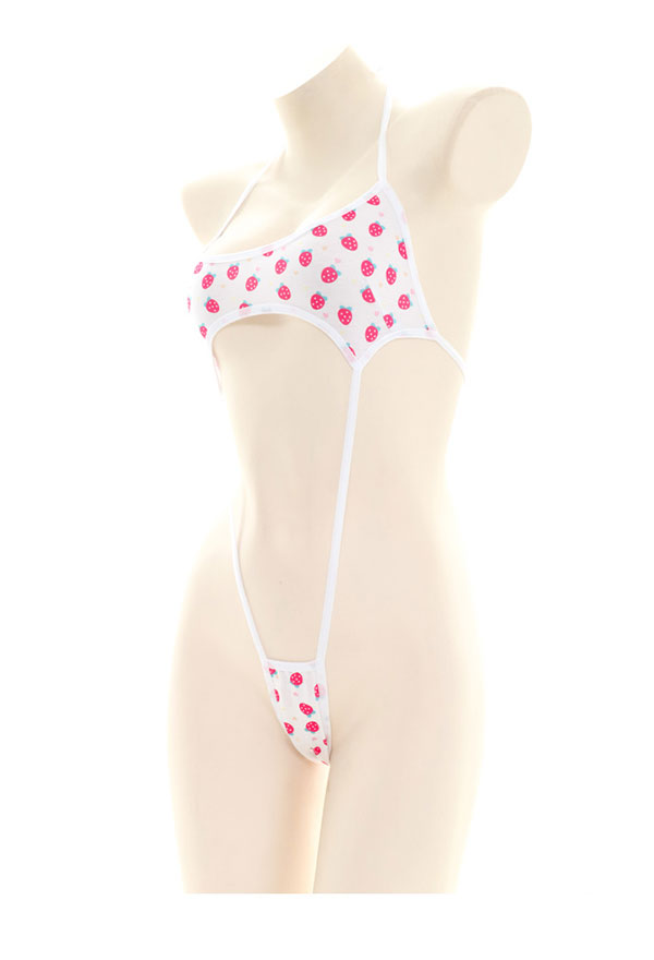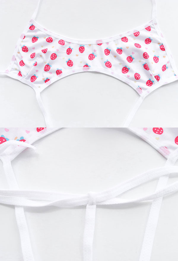 Women Sexy Strapped Strawberry Pattern Neck Halter Lingerie Swimsuit Bikini Bodysuit Underwear Pajama Outfit Cosplay Costume