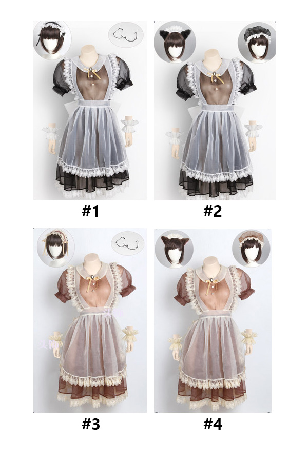 Costume Includes:dress, headband, glasses frame. Material: organza. The difference between #1 and #2 is that the accessories are different. ps. The joints of the clothes are a bit hard.