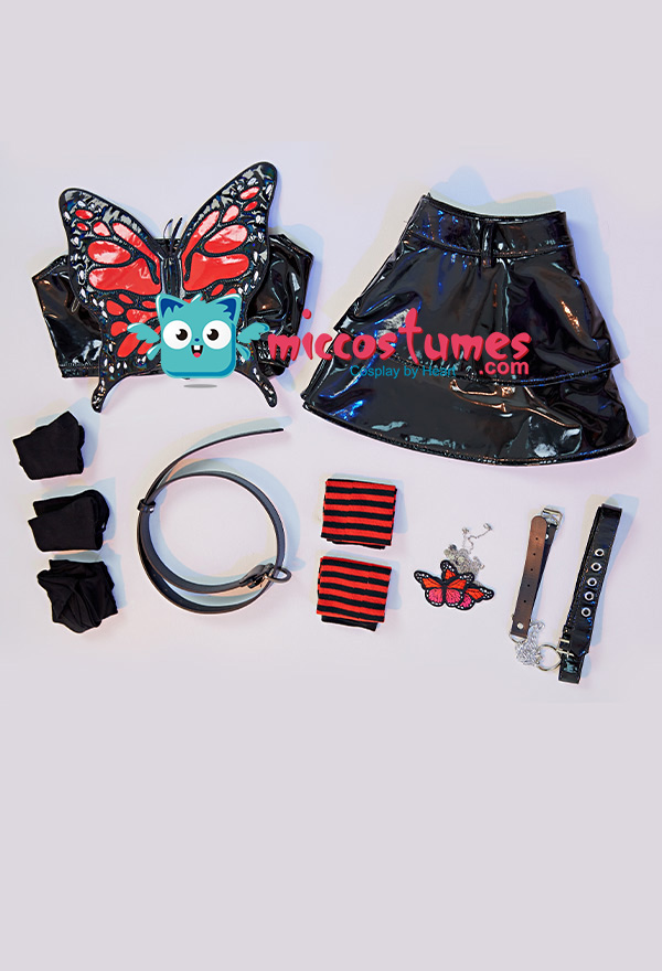 | Included Items | choker, top, skirt, chest strap, gloves*2, belt, waist chain, safety shorts, socks*2 |