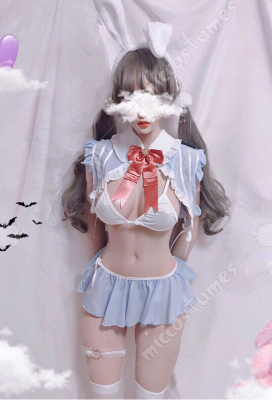 The costume includes choker, top, briefs, hairband. It is made of soft fabric.