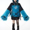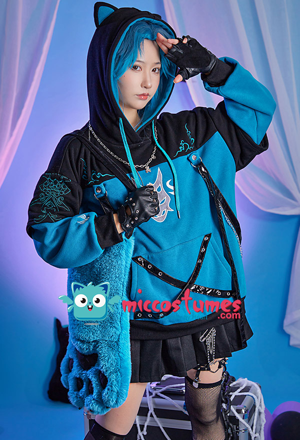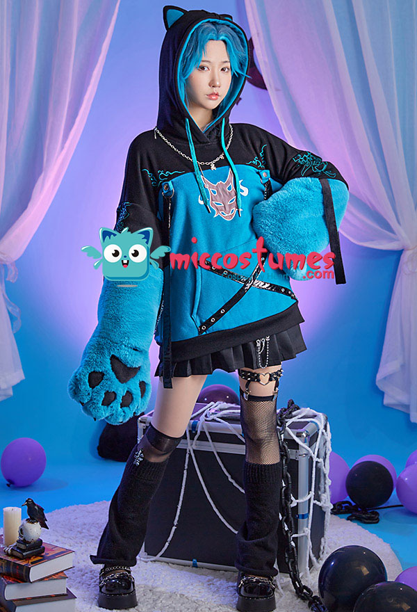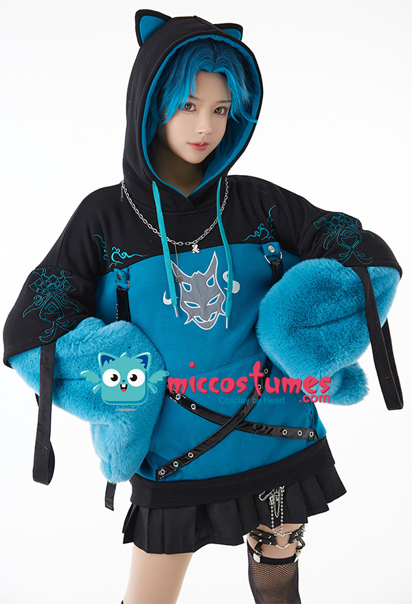 Design Details: 1. Inspiration Source – The hoodie is inspired from Genshin Impact Xiao with cat as the prototype. With the ear hood, the stylish prints and the furry paw gloves, it looks cute and cool. 2. Special Design – The detachable bag design furry paw is the highlight of this hoodie. The two long-sleeved paw gloves can be detached and used as two bags. 3. Soft & Cozy Materials – The main hoodie is made of high-quality sweatshirt fabric, which is breathable, light and comfortable. It’s specially suited for autumn and spring. The paw gloves are made of furry material, touching soft and comfortable. 4. Notes – There may be some floating fluff on the surface of the hoodie. We suggest you clean the stains with wet towel as soon as possible once your hoodie is stained. Please do not wash frequently. It cannot be machine washed. Please do not add any chemical products when washing. For the Paw Gloves Design: 1. The paws are filled with cotton cushions and provided with heart designs to offer a cute and real look. 2. Hidden zippers are provided on the sleeves and inside the gloves’ wrists. You can remove the gloves via the zippers on the sleeves or unzip the gloves’ wrists to let your hands free. 3. The strap on the gloves can be a fashion icon and can also be used to sling the bag design gloves over your shoulders. 4. The material used for gloves is super-soft and cozy to keep your hands always in a warm state.