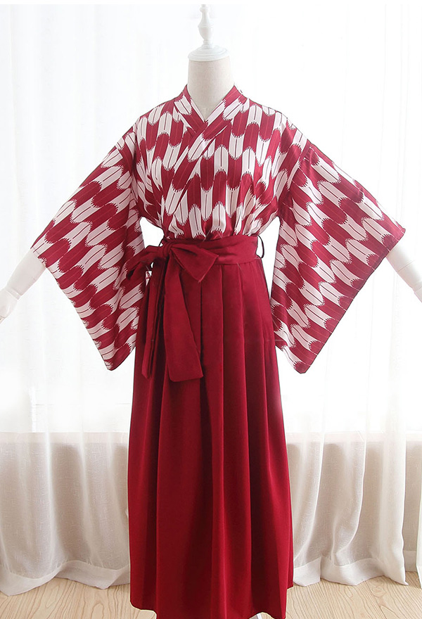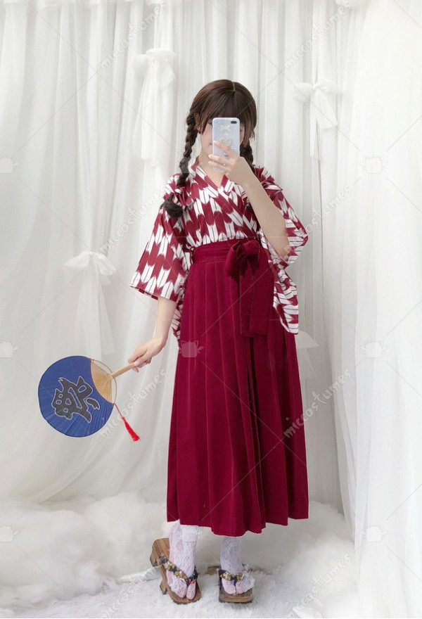 The costume includes haori, long skirt, waistband. It is made of polyester.