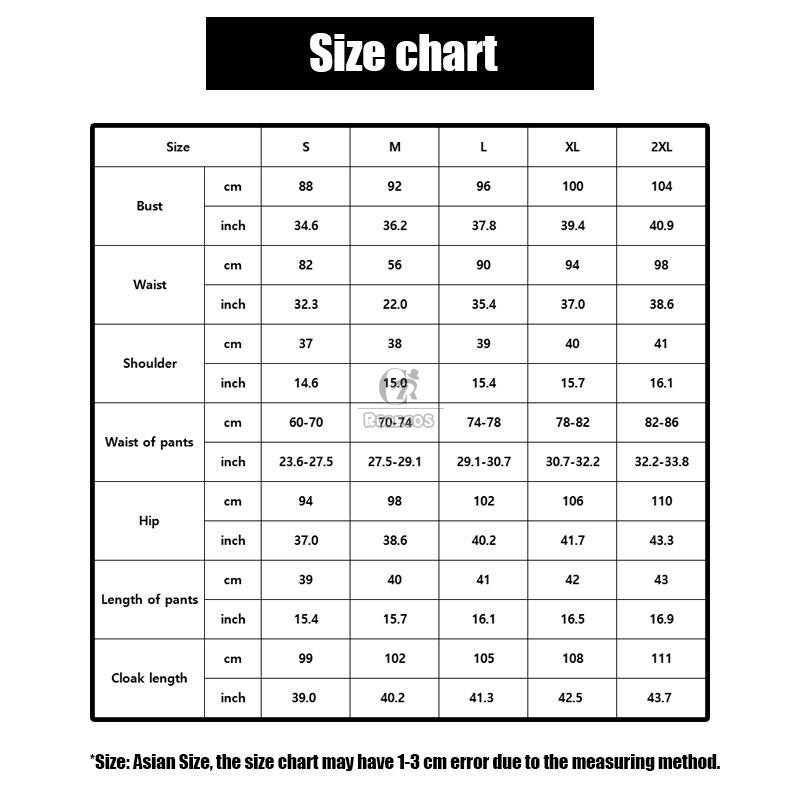 Included Items:Top, shorts, waist accessories, headwear, gloves, leg socks
