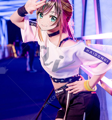 The costume includes top, shorts, head accessories, bracelet*2. It is made of polyester fibre.