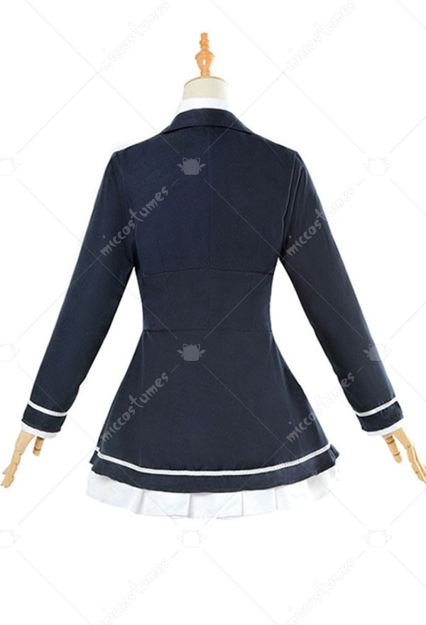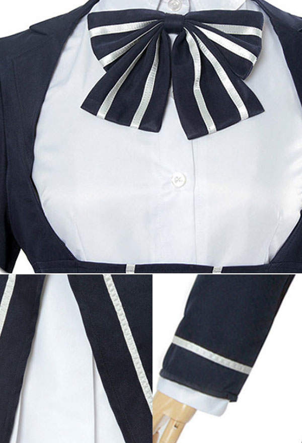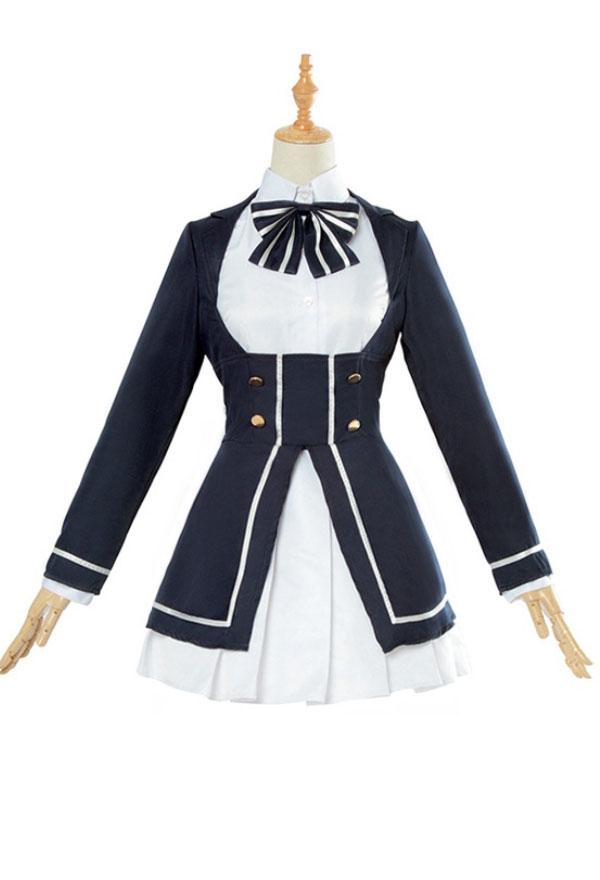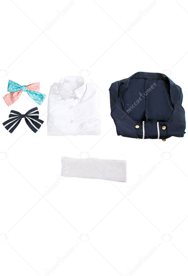 This costume includes coat, dress, tie, sock*2, headdress*1. It is made of terylene.
